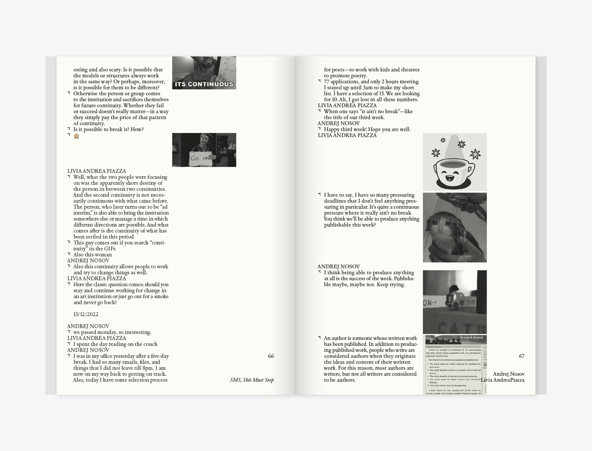 Contributions by Lotte van den Berg, Carolina Bianchi, Silvia Bottiroli, Ilenia Caleo, Laura Cull Ó Maoilearca, Piersandra Di Matteo, Valeria Graziano, Ainhoa Hernández Escudero, Samara Hersch, Asa Horvitz, Mala Kline, Low Kee Hong, Tom Oliver Jacobson, Miguel A. Melgares, Juan Miranda, Ogutu Muraya, Mazlum Nergiz, Andrej Nosov, nyamnyam (Ariadna Rodríguez and Iñaki Alvarez), Giulia Palladini, Venuri Perera, Livia Andrea Piazza, Amanda Piña, Annalisa Sacchi, Mariana Senne, Agat Sharma, Lara Staal, Elioa Steffen, Rolando Vázquez, Elioa Steffen, Suvani Suri, Pankaj Tiwari, Ingrid Vranken.